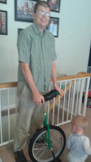 After hearing one of our nephews has a unicycle, Jacob decided to use some of his birthday money he'd never spent and buy one too! It's not as easy as it seems and is still a work in progress, but he's getting better!